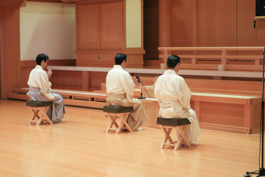 緊急事態宣言下であることを踏まえ、神の館に神魂を宿す清魂の儀、ならびに開所式は、旭川と中継を結び、神総本部で実施。旭川偉光会館での参列も中止とした異例の開所式となったものの、神主教会長先生、教主正使者供丸光先生、神奉仕供丸清先生によって、清く、厳かな行事の全てが滞りなく挙行され、無事に開所がかなったのです。