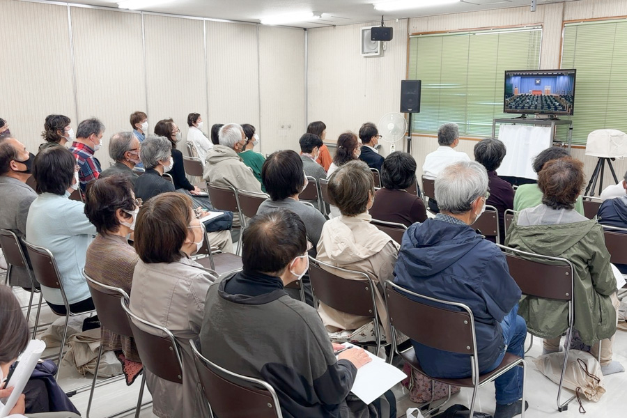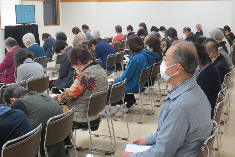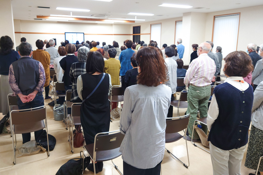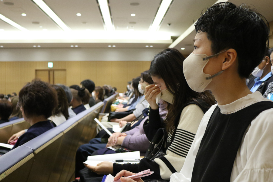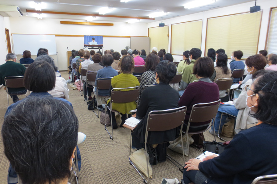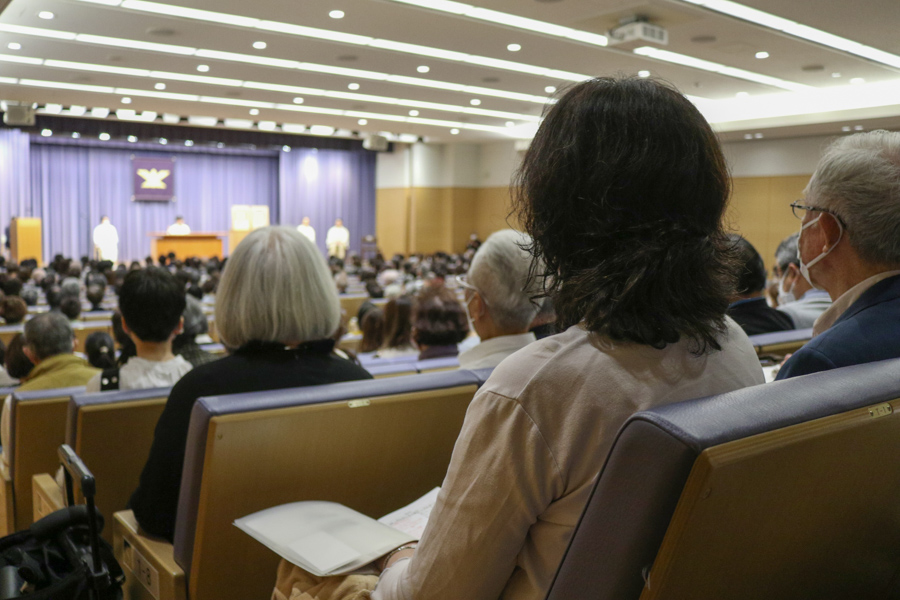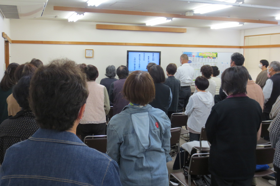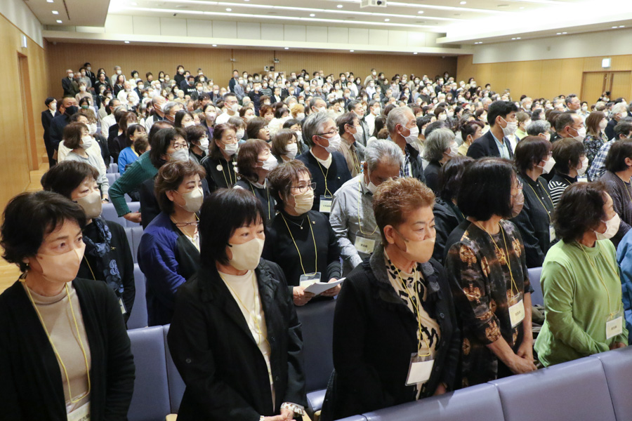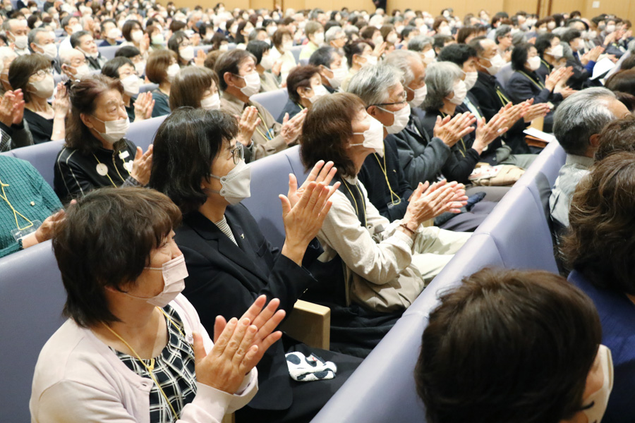 信者の代表は、和のある家庭を築く努力をすることによって、人生が好転している様子を発表。つらい状況を乗り越える、教えで生きる信念を目の当たりにして、意欲に燃える出席者たち。「自分ももっと仕合せに」という誓いを込めて、教会歌「希望の光」を斉唱しました。それぞれが、思いを何でも語り合える家庭を築くために、心を磨くことを固く決意しています。