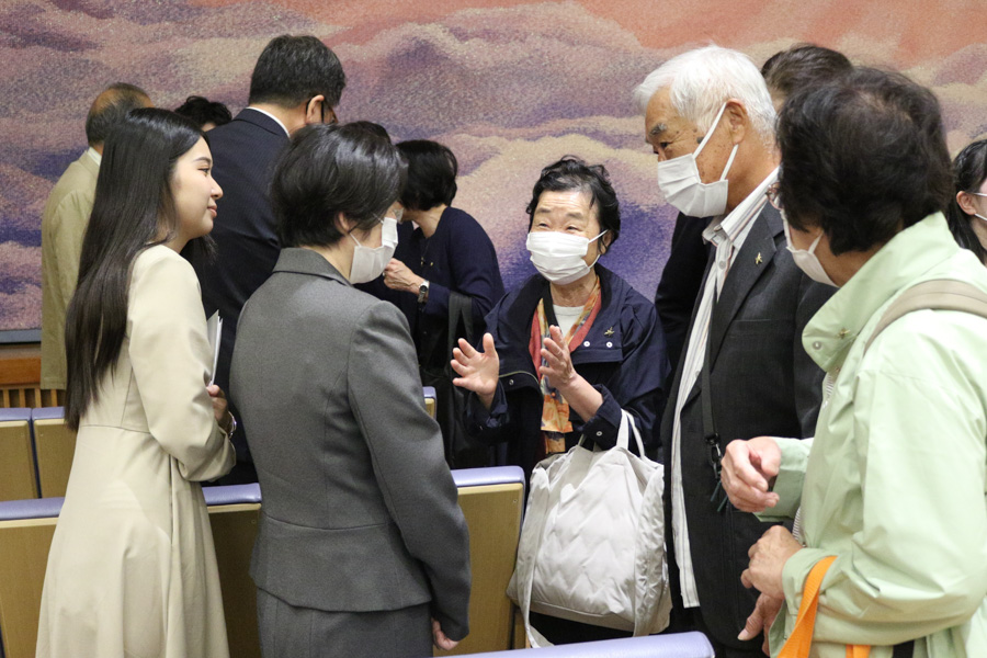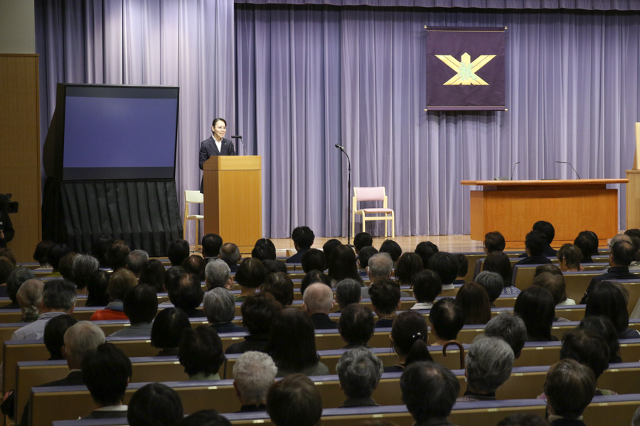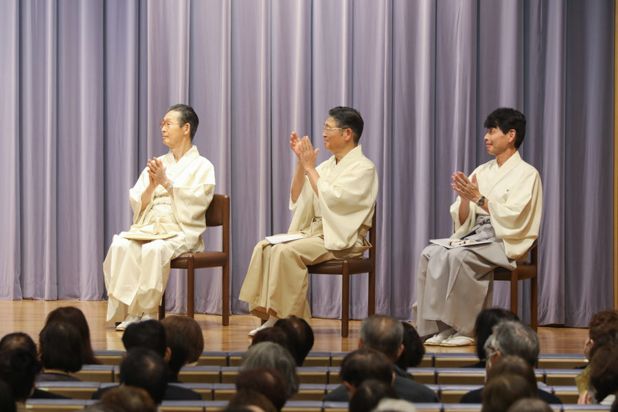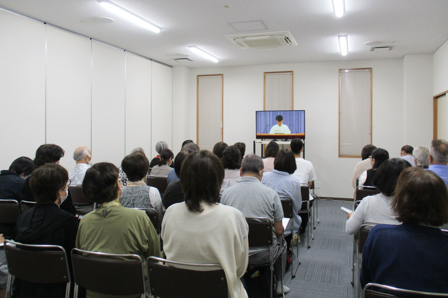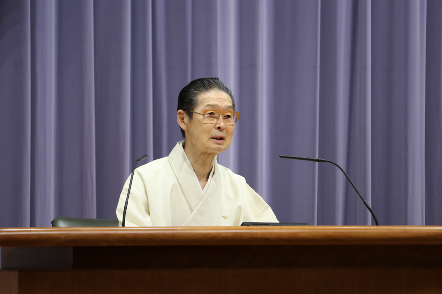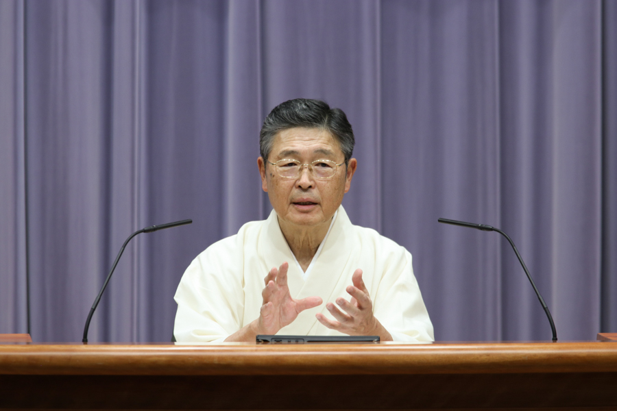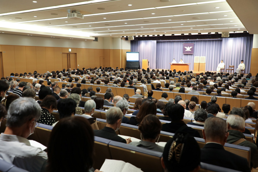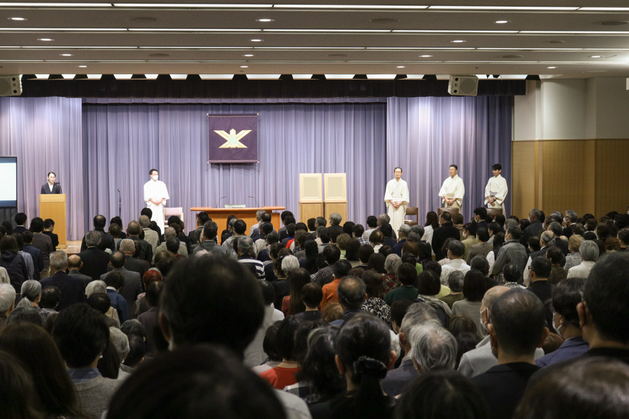先生方のお話から伝わってきたのは、心が変わり、生き方が高まり、人生が上向いていく、神の教えとお力の価値。教えを学んで実践する繰り返しに、夫婦、親子の心が通い合い、互いを思いやる気持ちが深まります。家族の心の重なりは、病、事故・災難さえ遠ざけるもの。そればかりか、良い生き方が受け継がれ、自分より子、孫…と代を重ねるほど仕合せに…。大山命の降臨から80年近い年月を重ね、今の神示教会には、そうした確かな救いを味わう信者家族が確実に増えています。その意義を思うにつけ、供丸斎先生の偉大な足跡に感謝が湧き上がり、誰もが目頭を押さえながら、お話に聞き入りました。