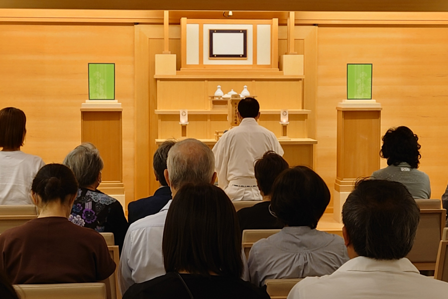 厳かな空気に包まれた式場。参列者は、自然と居住まいを正して着席し、心を静めて儀式に臨みます。