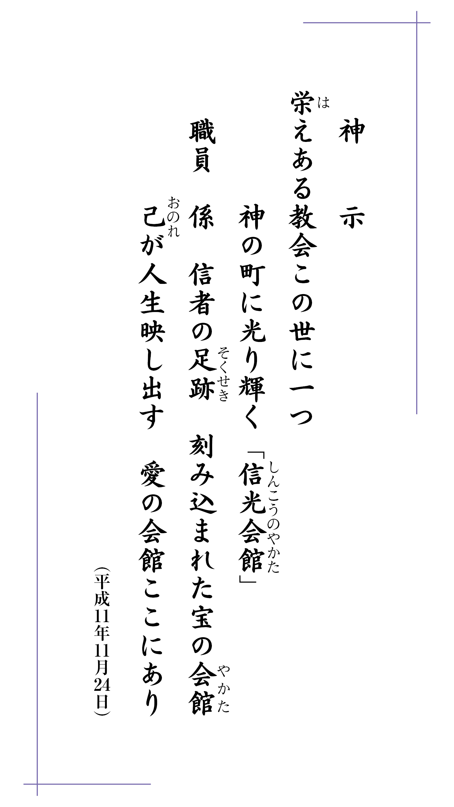 神の教えに触れて自身を振り返り、心を磨いていく、学びの館です。この会館には、一人一人が自分の心を客観的に見詰めることで、多くの気付きを得て生き方を正し、光る人柄へと人間性を高めていく力があります。