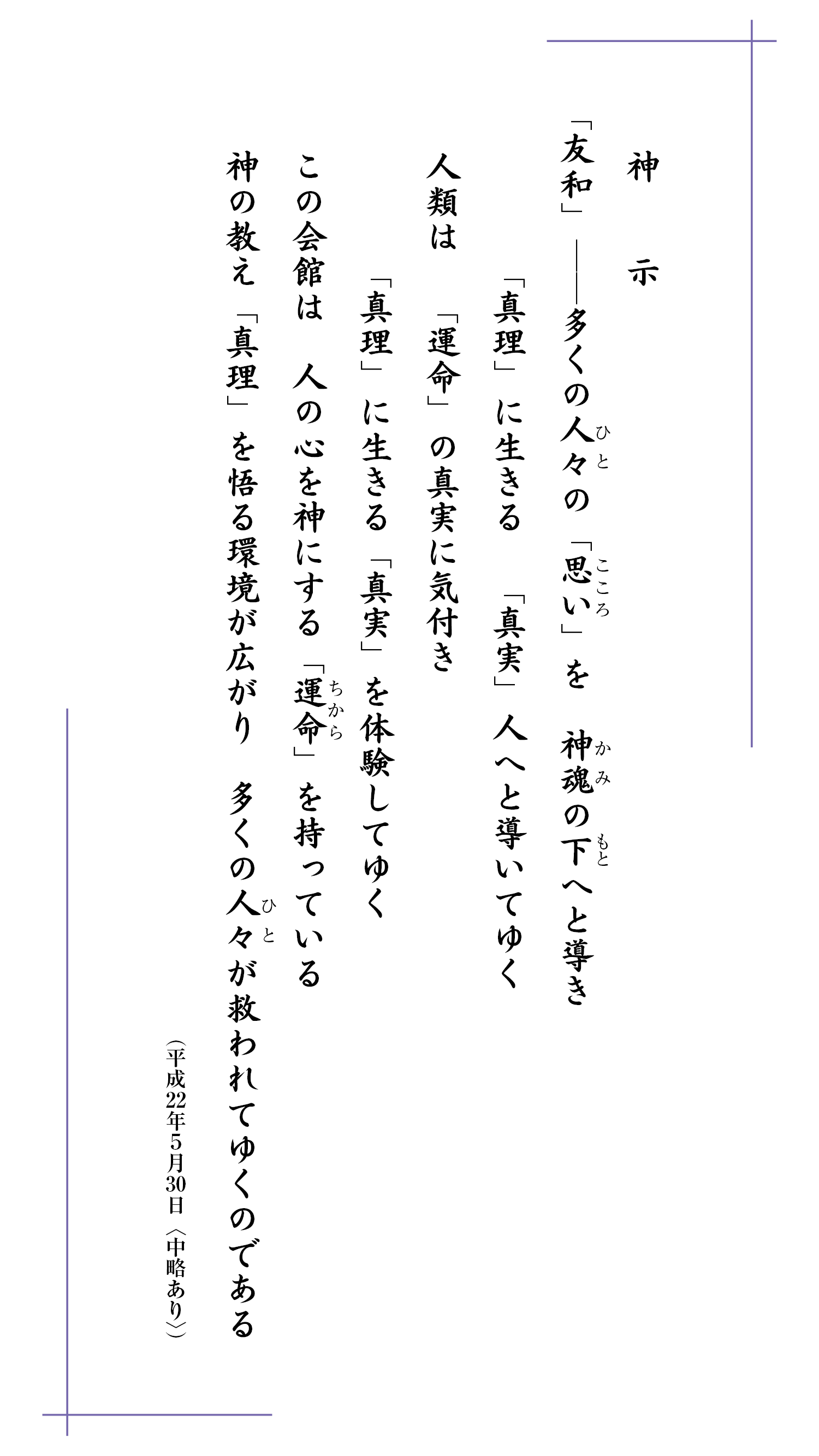 神示教会の総合案内、最新情報が分かる掲示板、『友輪』の受け取り